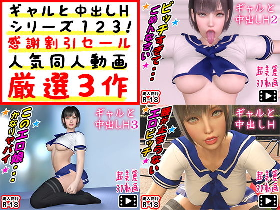 【d_206794】ギャルと中出しHシリーズ123!感謝割引セール人気同人動画厳選3作|3DCG 動画・アニメーション 音声付き 制服 巨乳 中出し フェラ パイズリ ベスト・総集編 ビッチ 動画ファイル 専売 男性向け 成人向け|もぐら